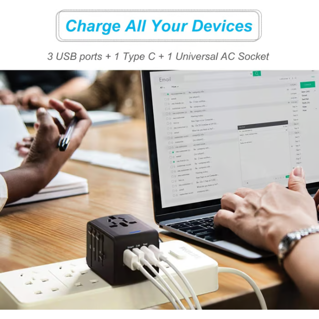 USB C Universal Power Adapter: The 3 USB A ports can charge up to 2.4A/12W per port, and the USB C port can charge up to 3A/15W, ideal for cell phone, tablet, power bank, laptop, camera, ect. All the USB ports output: 5V/3.4A, 17W max